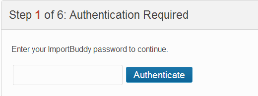 ImportBuddy will now ask for the password that you created when you downloaded ImportBuddy.